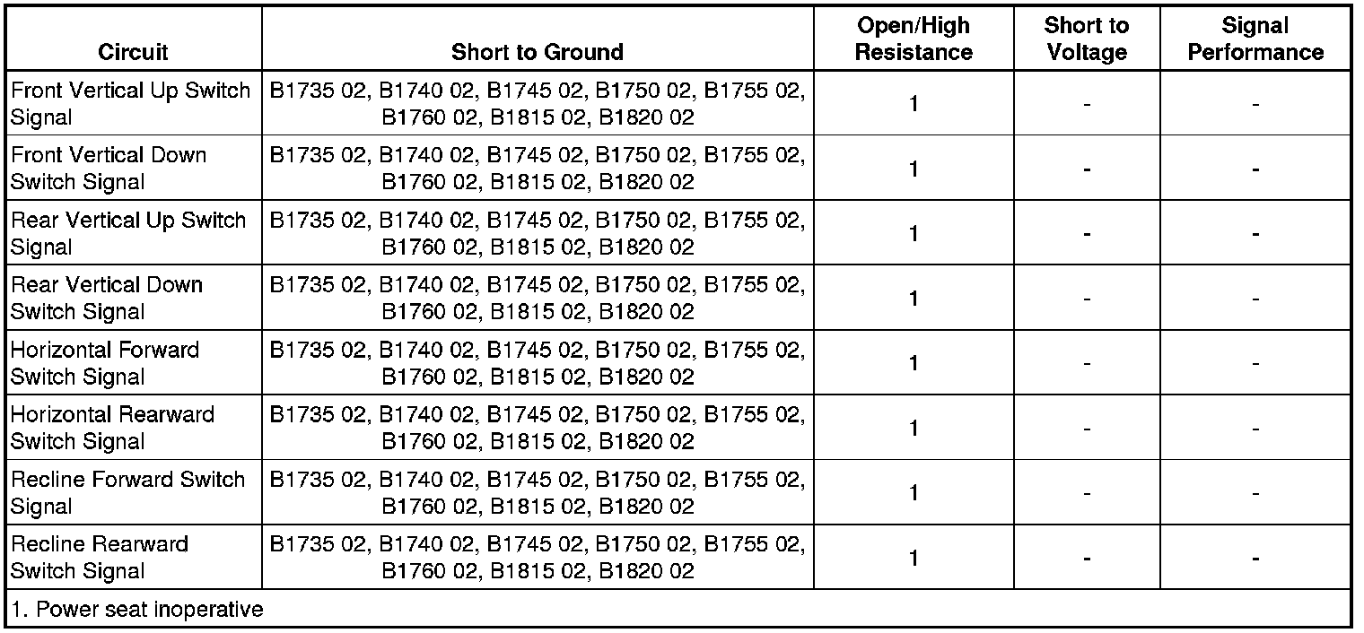 - Driver Seat Assembly Rearward Switch Circuit Short to Ground