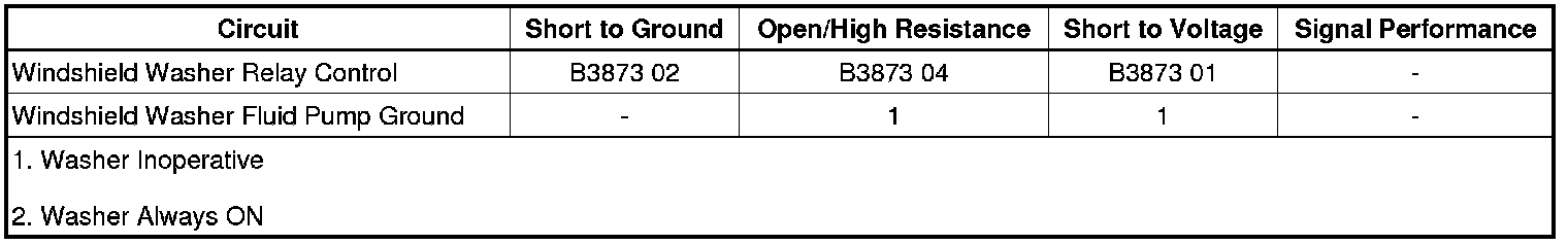 * A short to voltage is detected in the windshield washer relay control circuit.