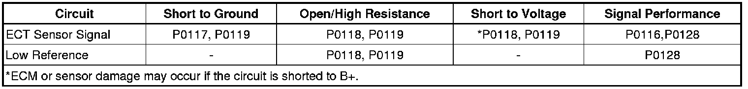 - Engine Coolant Temperature (ECT) Sensor Circuit Low Voltage