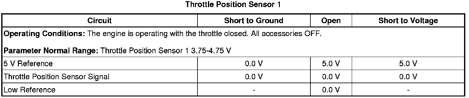 - Throttle Position Sensor 1 Circuit Low Voltage