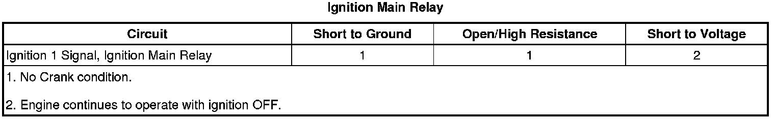 The ECM detects that there is greater than 3 V difference between the ignition main relay signal and the engine controls ignition relay signal circuits for less than 1 s.