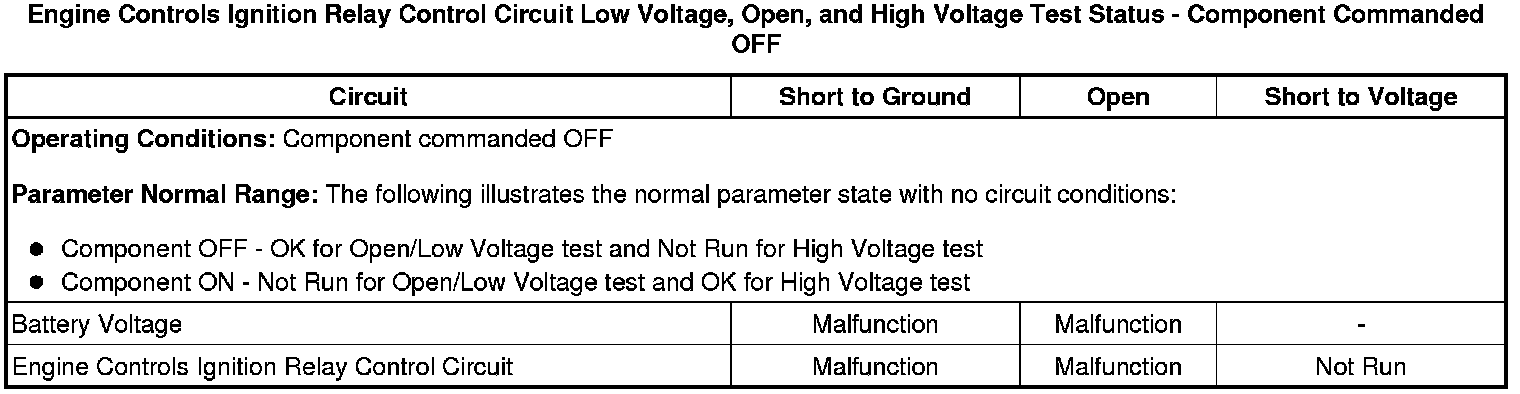 * Engine Controls Ignition Relay Control Circuit High Voltage Test Status