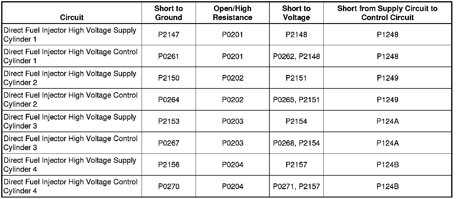 DTC P0201-P0204, P0261, P0262, P0264, P0265, P0267, P0268, P0270, P0271, P1248, P1249, P124A, P124B, P2147, P2148, P2150, P2151, P2153, P2154, P2156, or P2157
