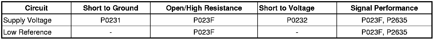 2. Verify DTCs P018B, P018C, P018D, P0231, P0232 or P023F are not set.