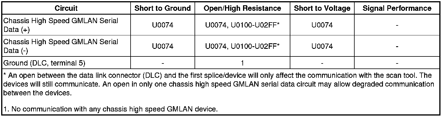 * Communication may be available between some devices and the scan tool with the chassis high speed GMLAN serial data system inoperative. This condition is due to those devices using multiple serial data communication systems.