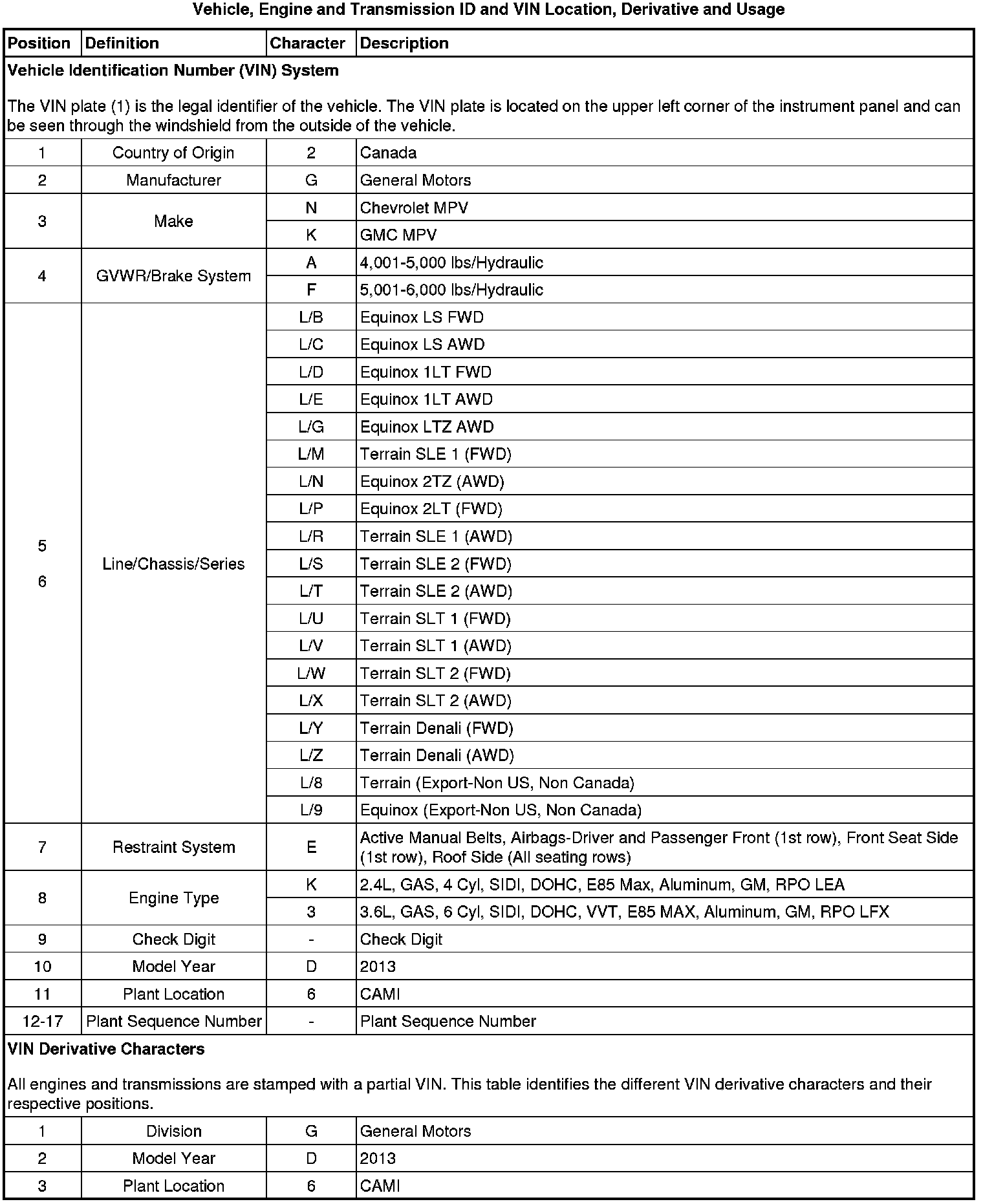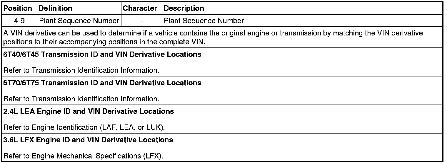 Vehicle, Engine and Transmission ID and VIN Location, Derivative and Usage