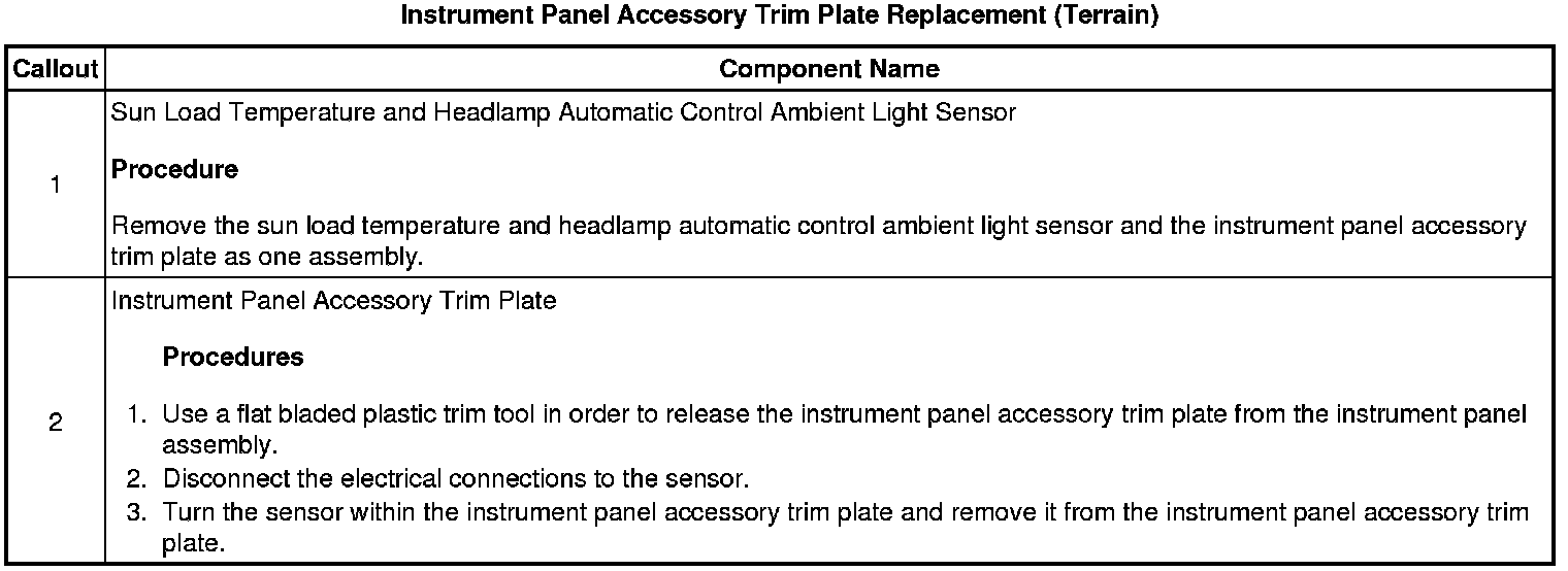 Instrument Panel Accessory Trim Plate Replacement (Terrain)