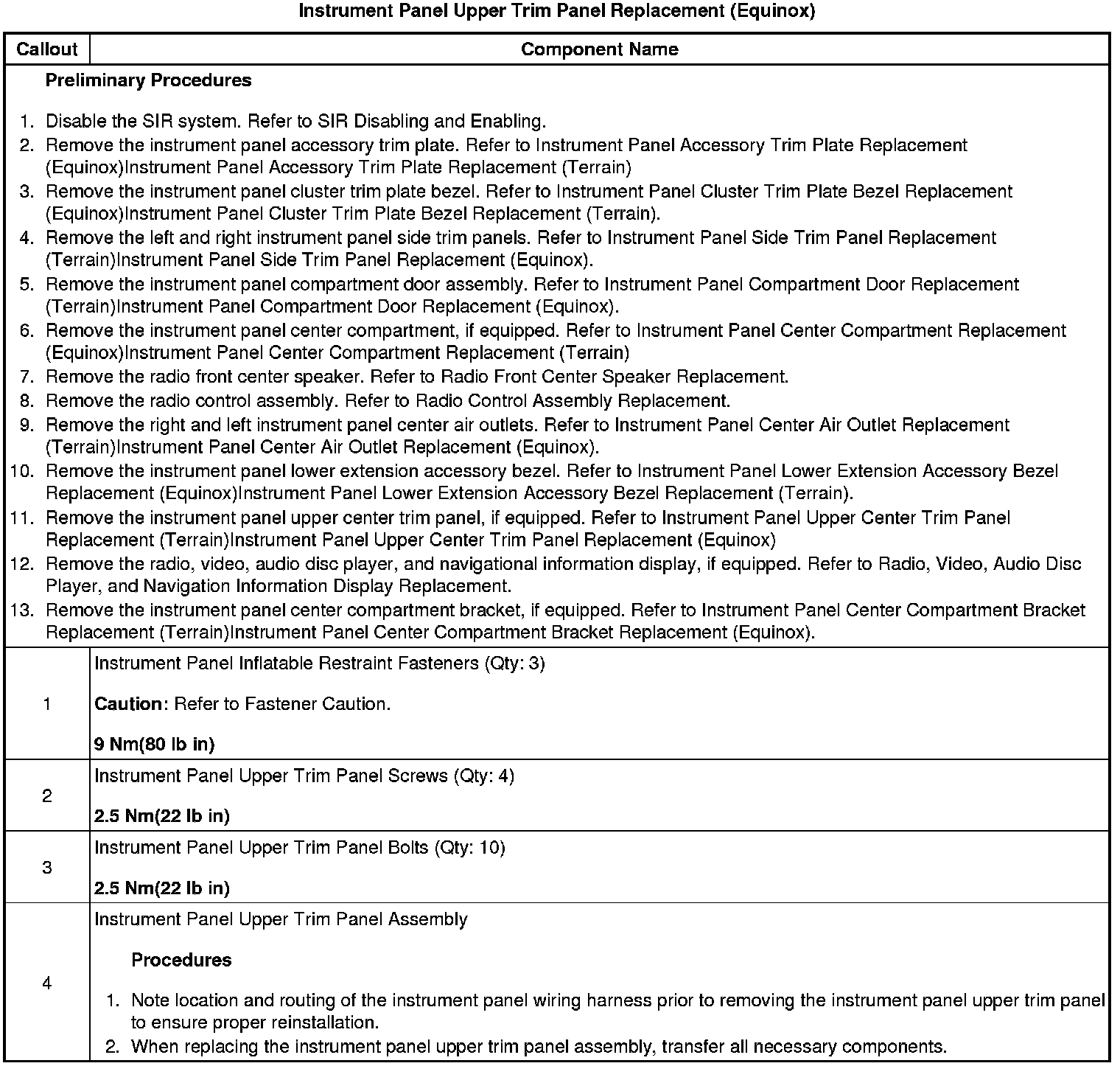 Instrument Panel Upper Trim Panel Replacement (Equinox)