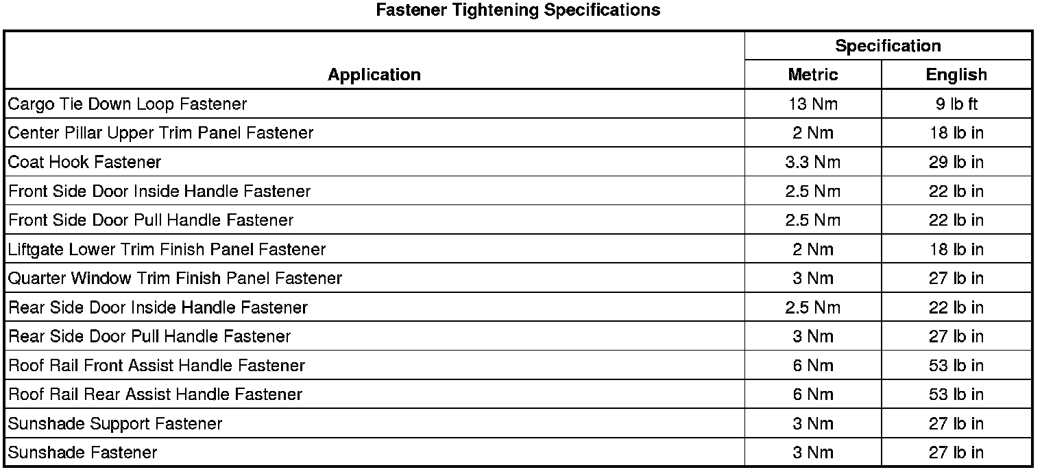Fastener Tightening Specifications