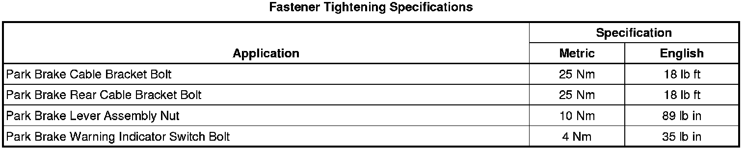 Parking Brake System: Specifications