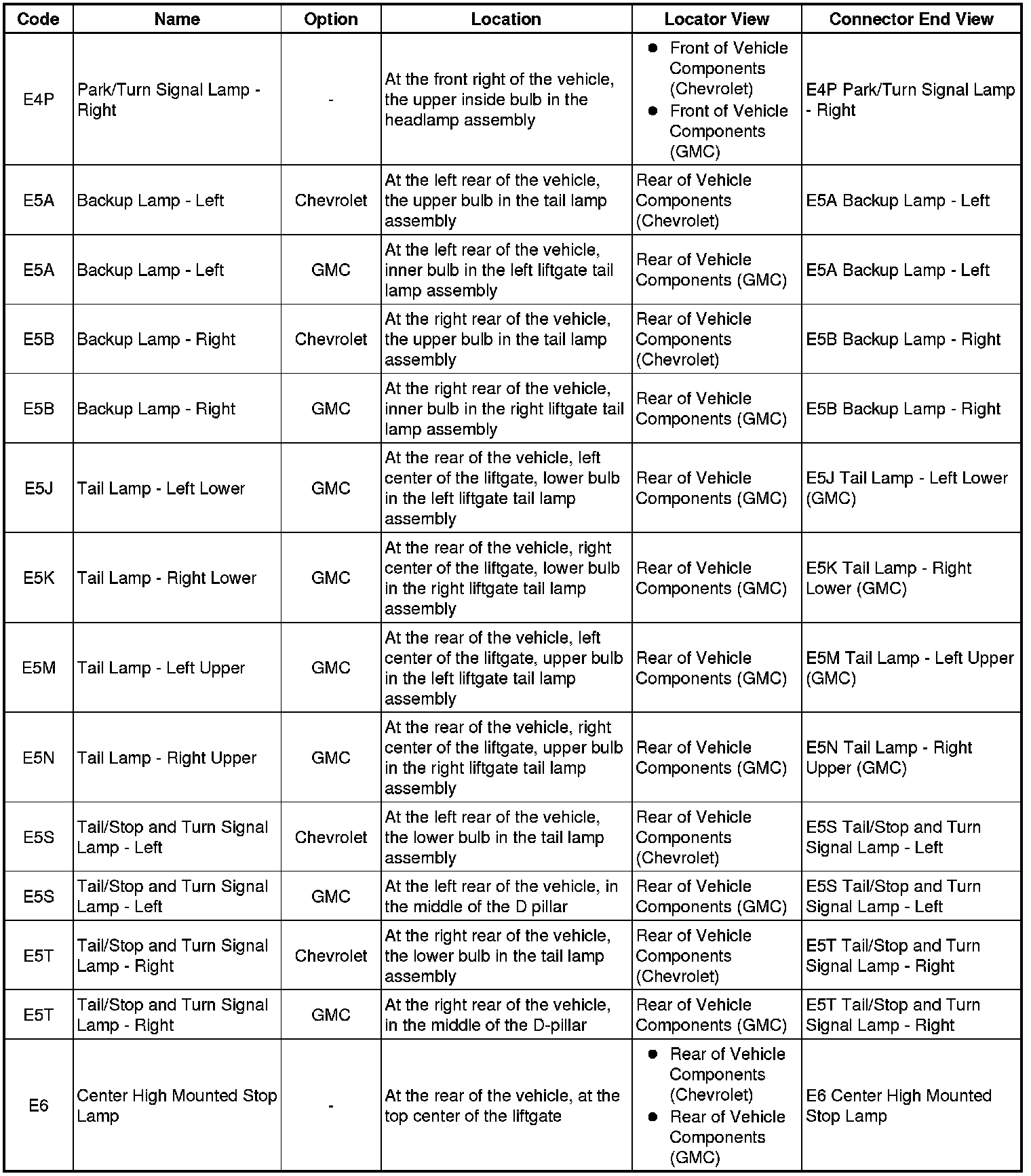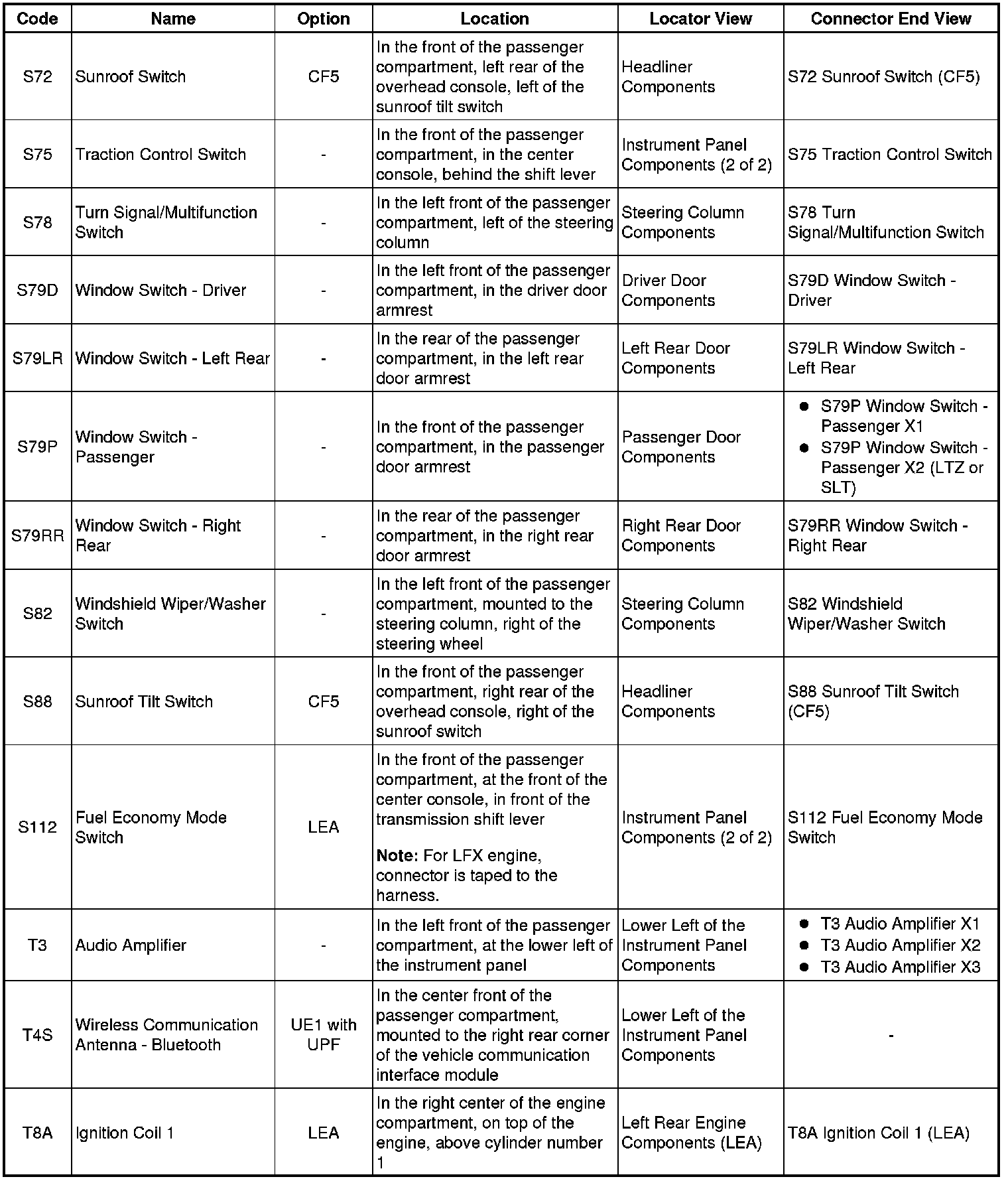 Master Electrical Component List