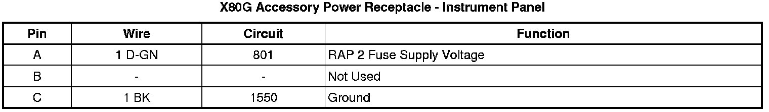 X80G Accessory Power Receptacle - Instrument Panel