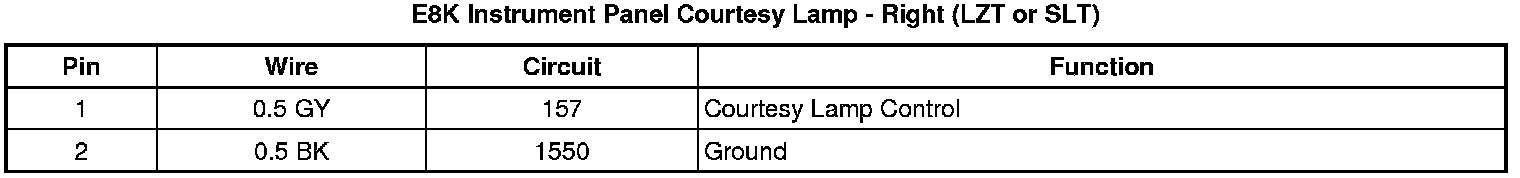 E8K Instrument Panel Courtesy Lamp - Right (LZT or SLT)