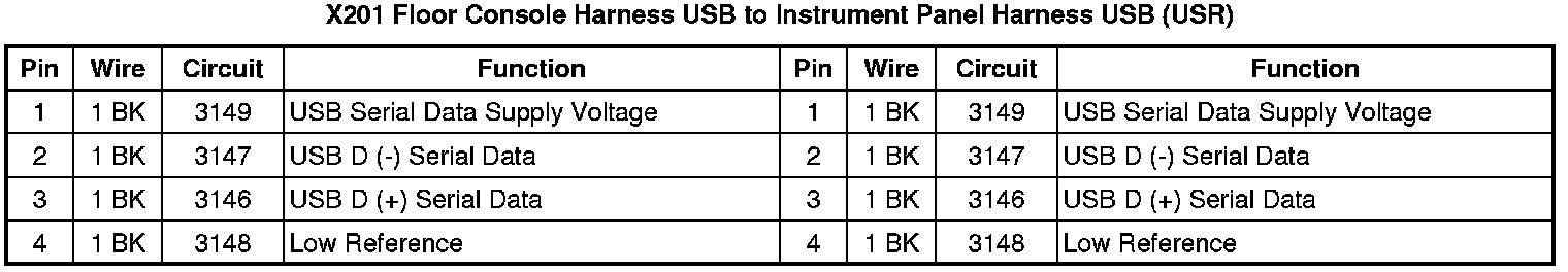 X201 Floor Console Harness USB to Instrument Panel Harness USB (USR)
