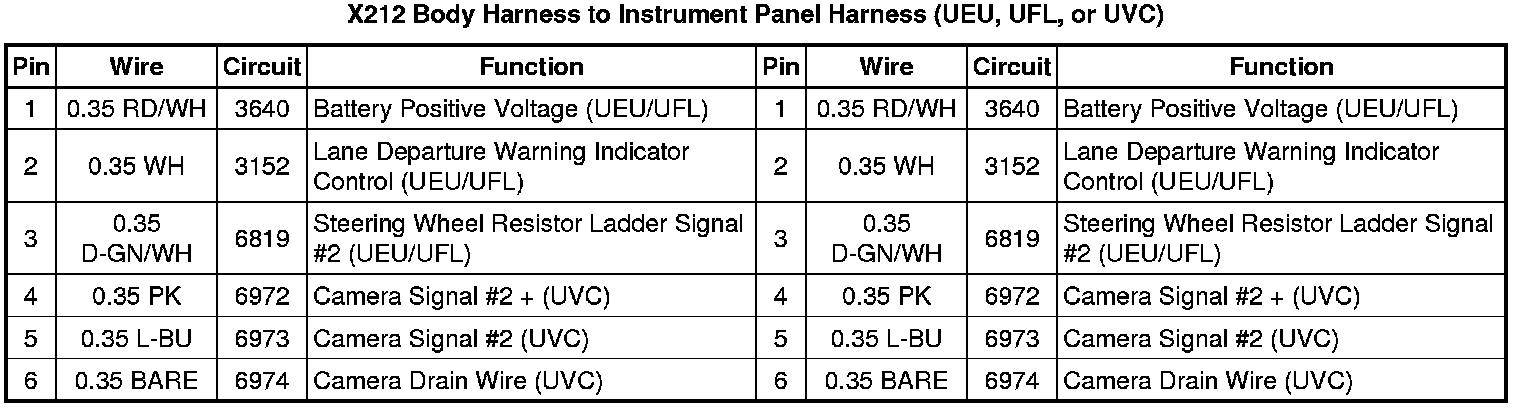 X212 Body Harness to Instrument Panel Harness (UEU, UFL, or UVC)