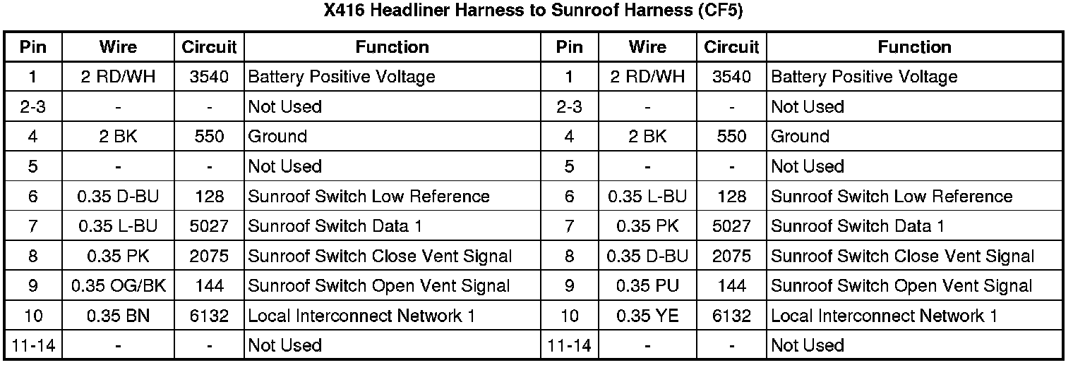 Harness to Sunroof Harness (CF5)