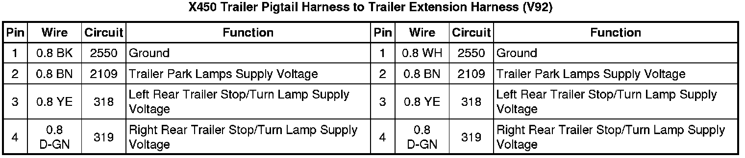 X450 Trailer Pigtail Harness to Trailer Extension Harness (V92)