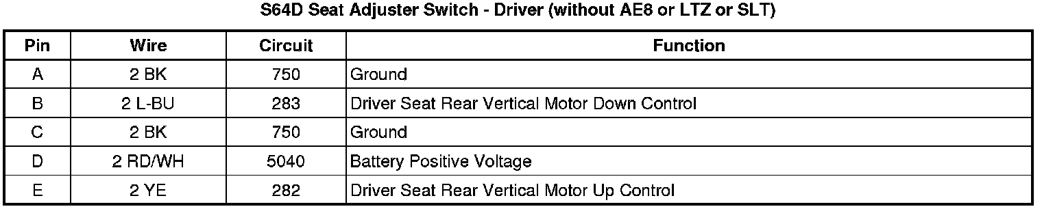 Seat Adjuster Switch - Driver (without AE8 or LTZ or SLT)
