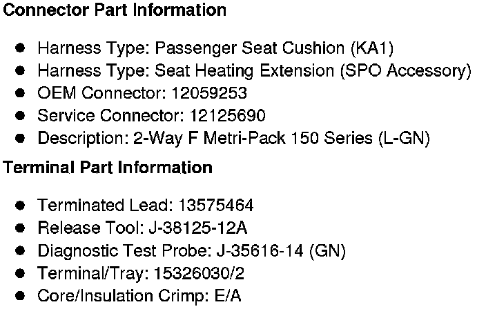 Seat Heating Element - Passenger Back (KA1 or SPO Accessory)