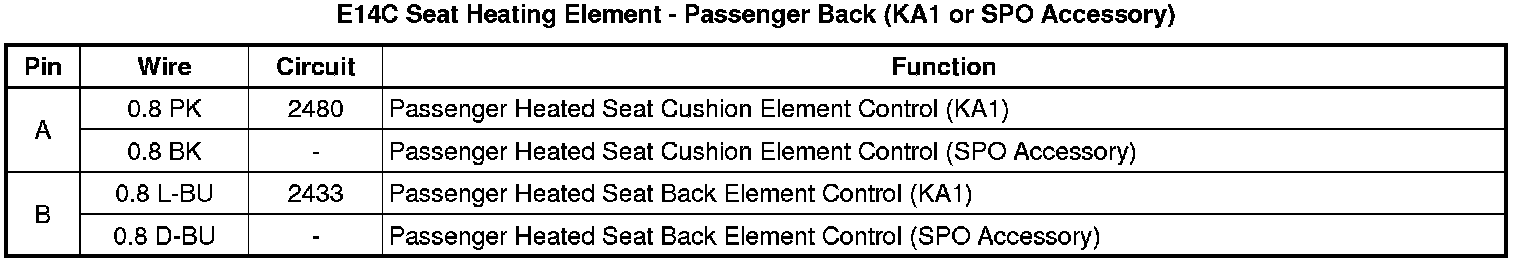 E14C Seat Heating Element - Passenger Back (KA1 or SPO Accessory)
