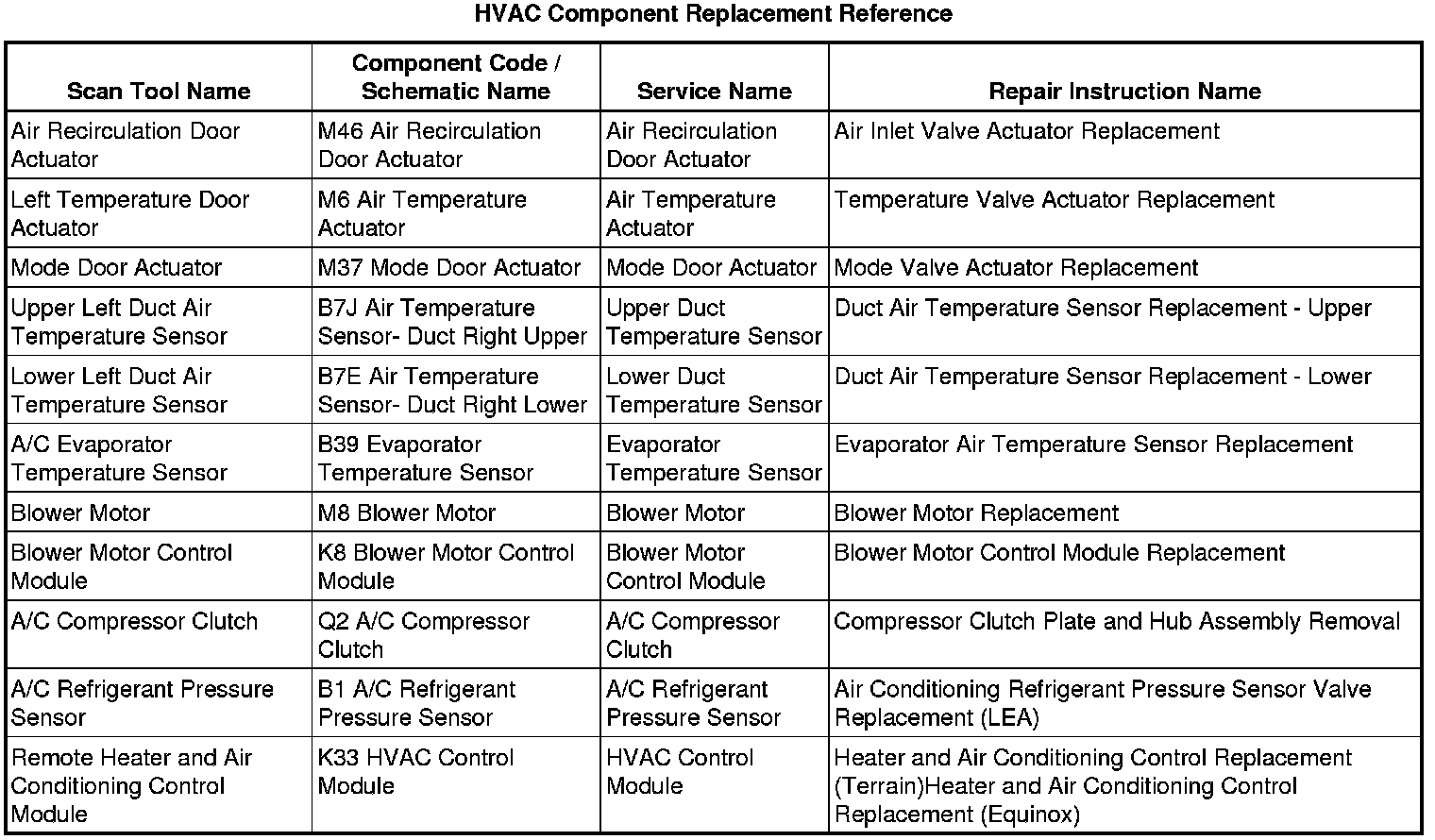 HVAC Component Replacement Reference
