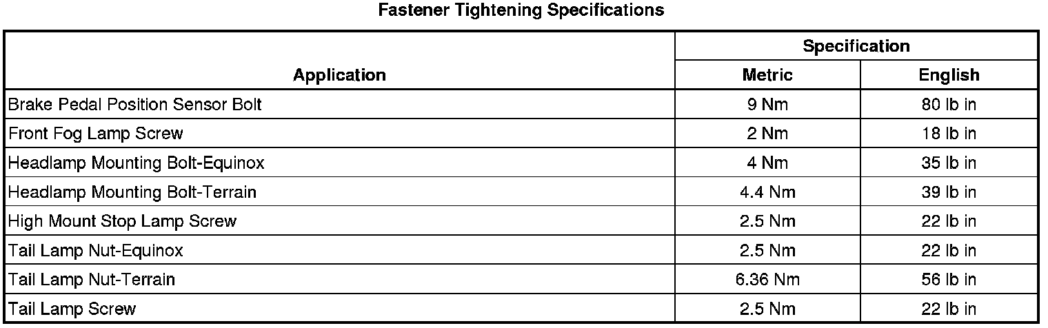 Fastener Tightening Specifications