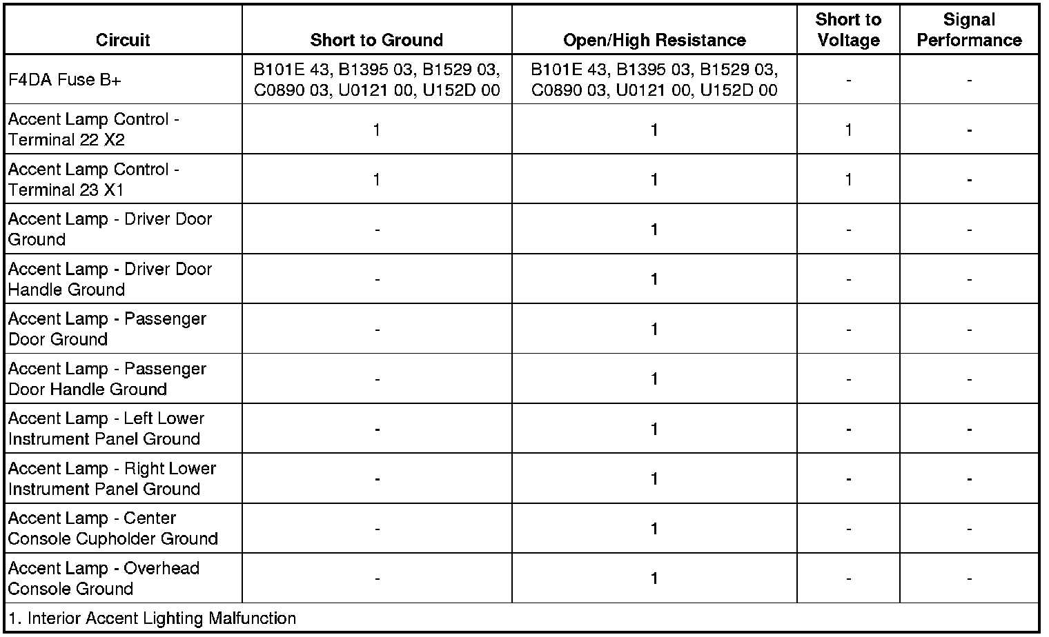 Interior Accent Lighting Malfunction