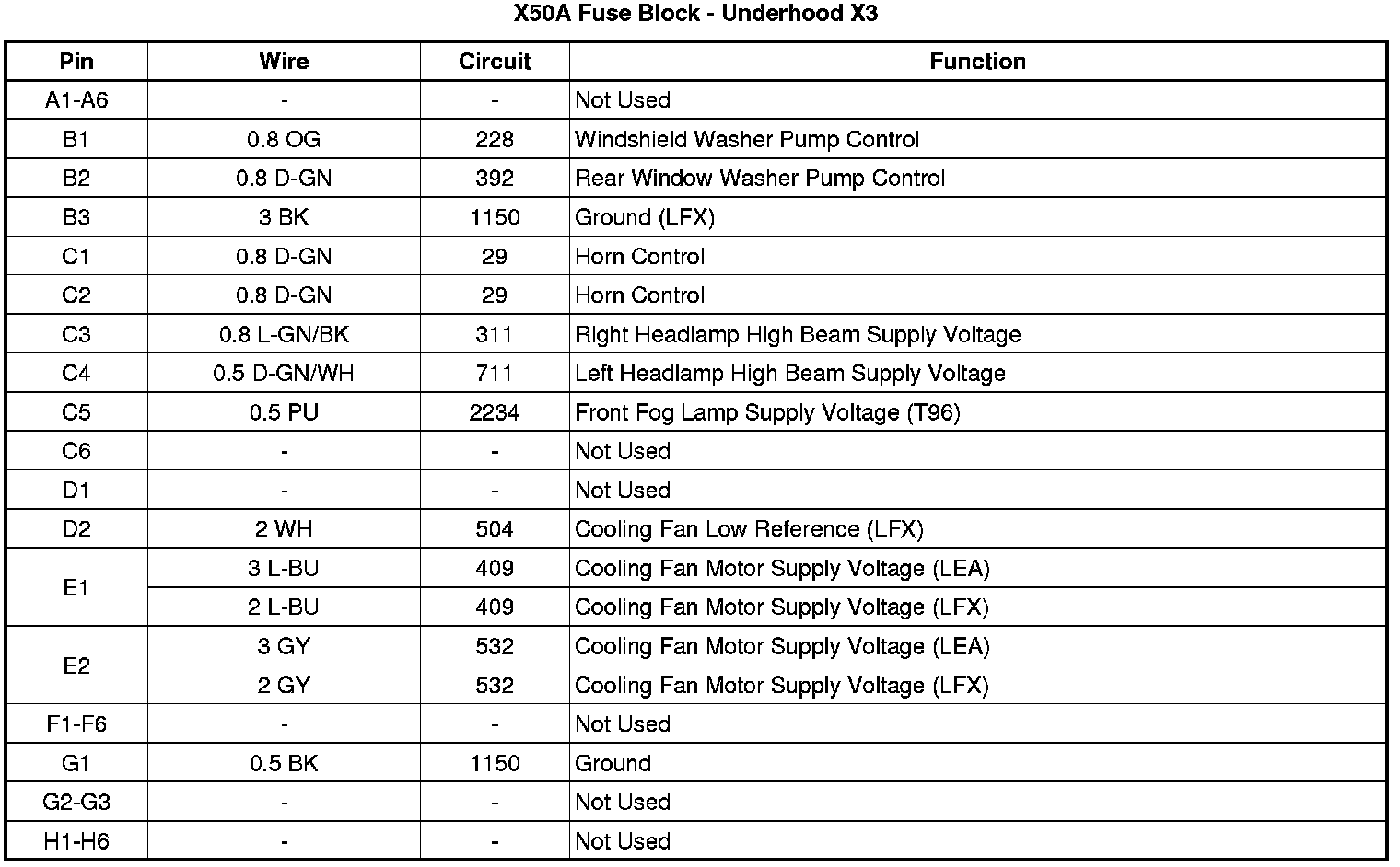 X50A Fuse Block - Underhood X3