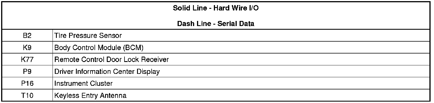 The system uses the body control module (BCM), driver information center, instrument cluster, a radio frequency (RF) transmitting pressure sensor in each wheel/tire assembly, and the serial data circuit to perform the system functions. Each sensor has an internal power supply with an approximate 10 year service life.
