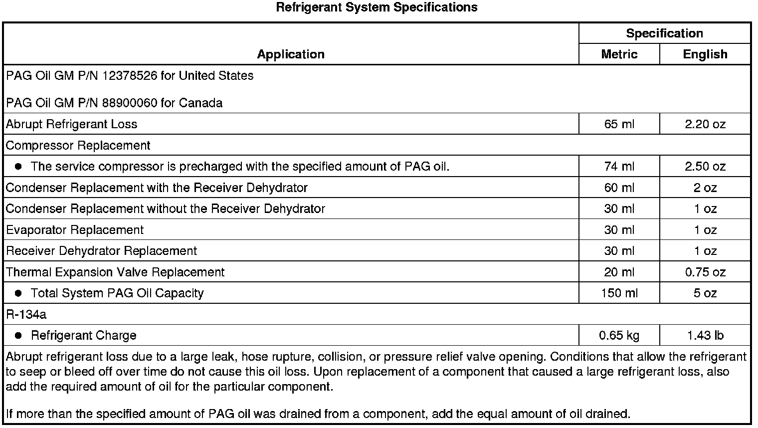Refrigerant System Specifications