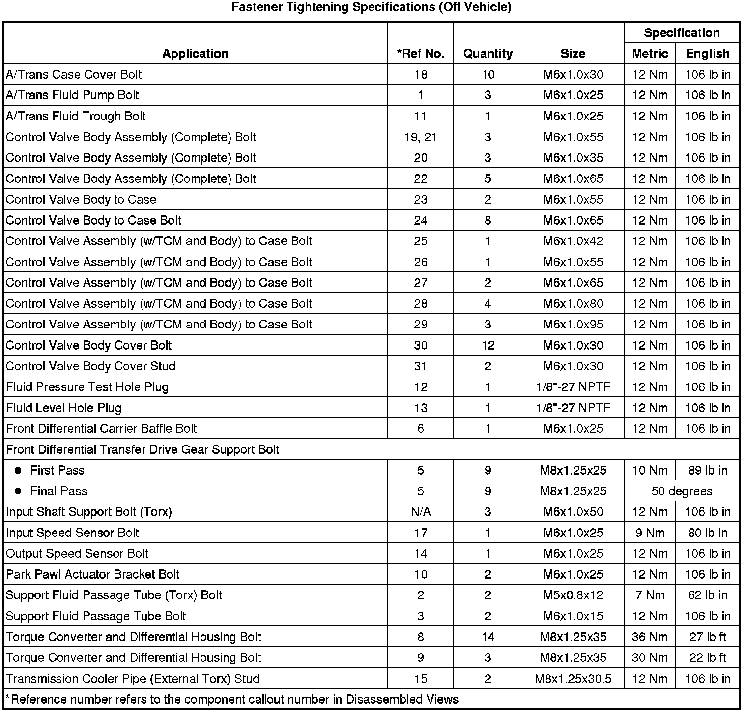 Fastener Tightening Specifications (Off Vehicle)
