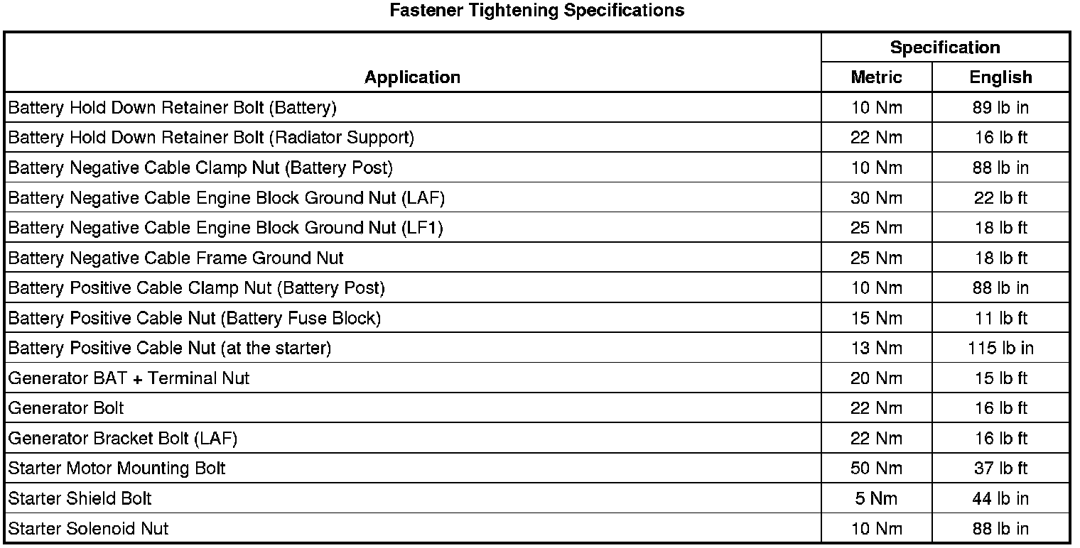 Fastener Tightening Specifications