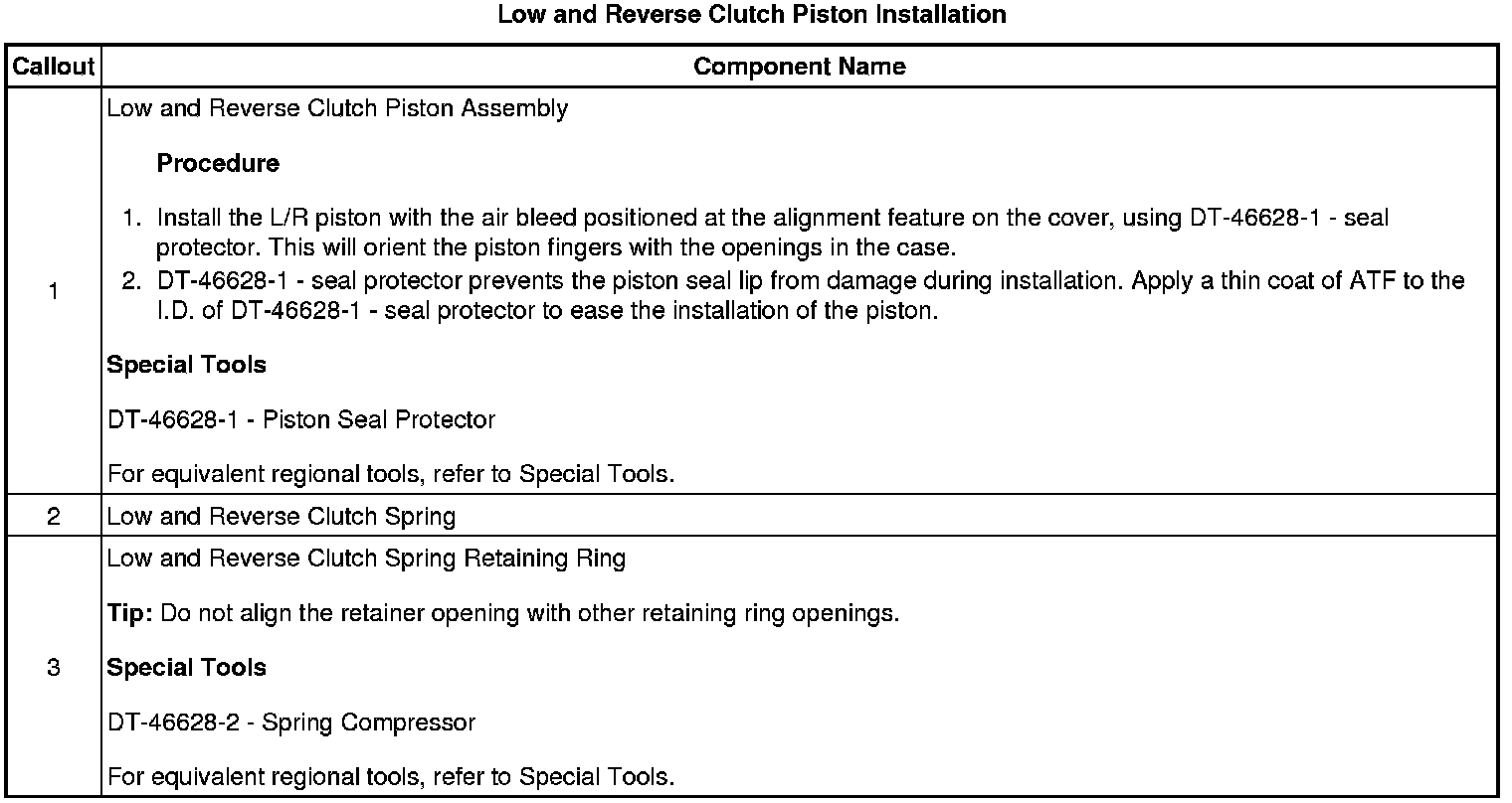 Low and Reverse Clutch Piston Installation