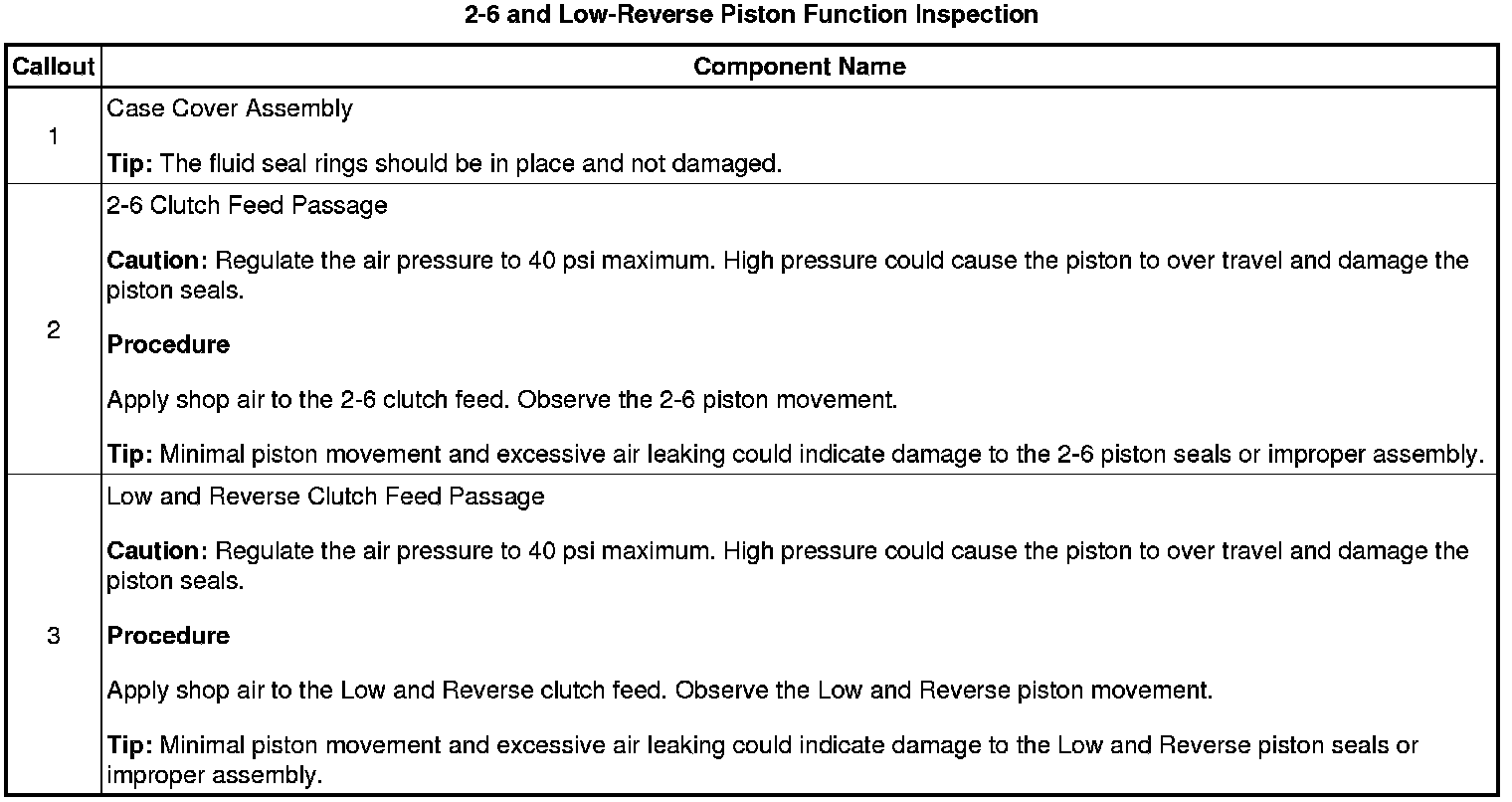 2-6 and Low-Reverse Piston Function Inspection