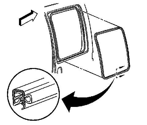 3. Install the body side window. Refer to Body Side Window Replacement (Stationary) Body Side Window Replacement (Stationary)Body Side Window Replacement (Swing Out) Body Side Window Replacement (Swing Out).