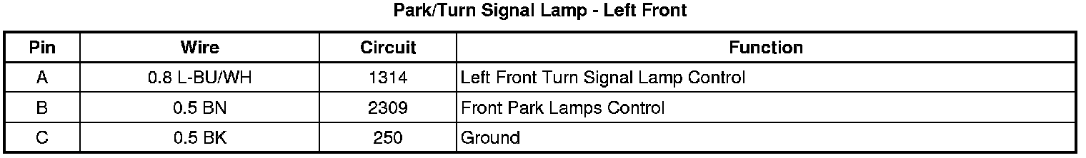 Park/Turn Signal Lamp - Left Front