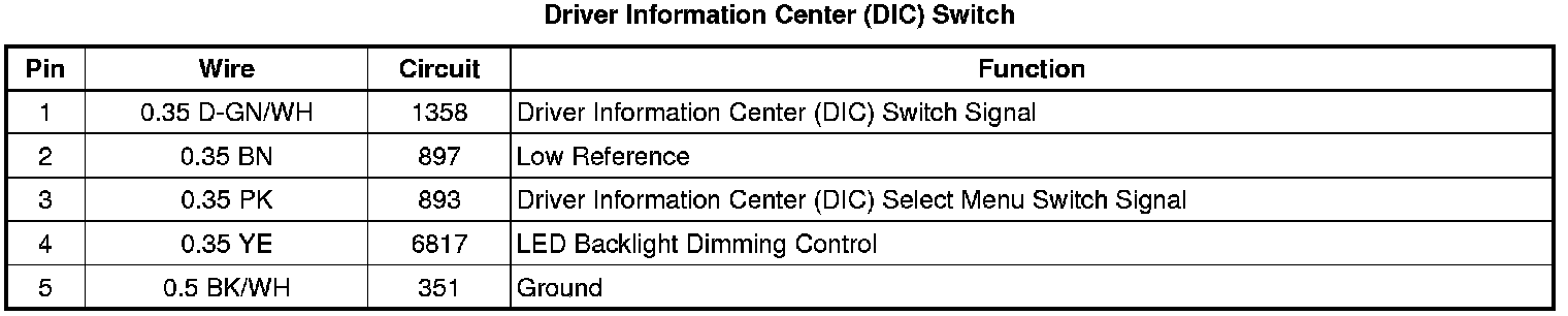 Driver Information Center (DIC) Switch