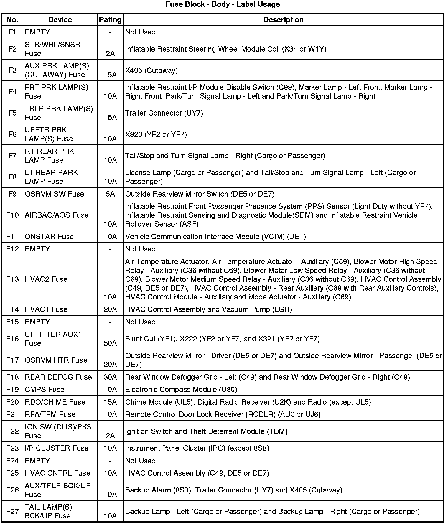 Fuse Block - Body Label