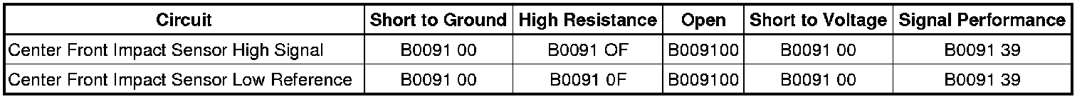 1. For DTC B0091 39 or B0091 3A replace the the B59 center front impact sensor.