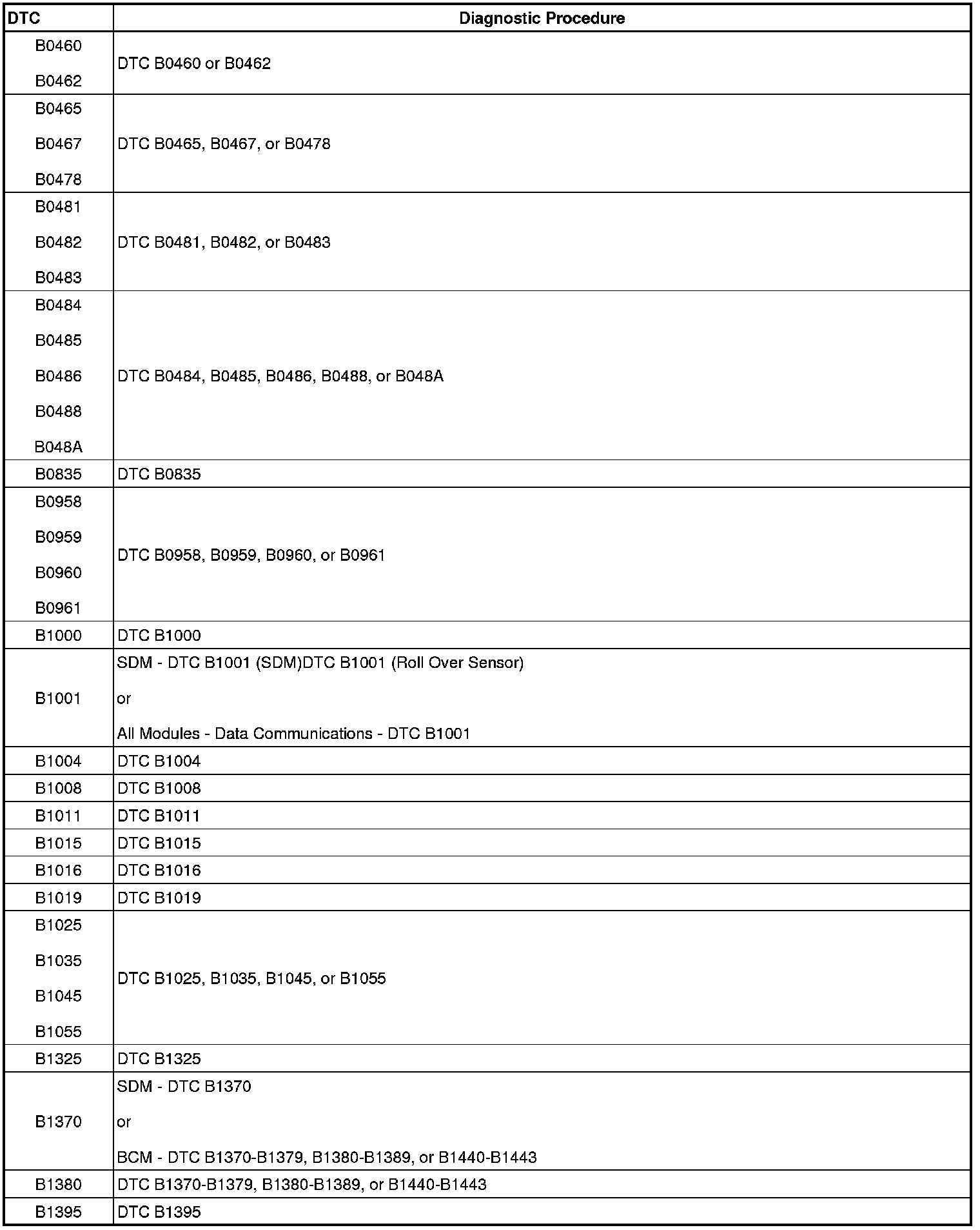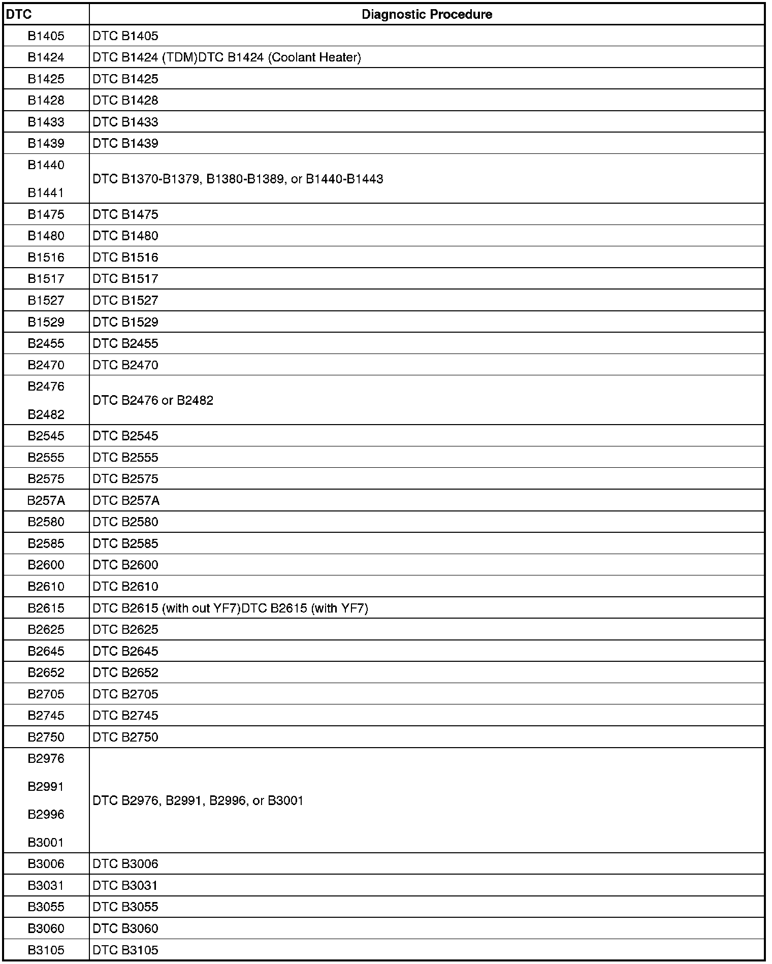 This master DTC list includes all applicable DTCs in alphanumeric order.