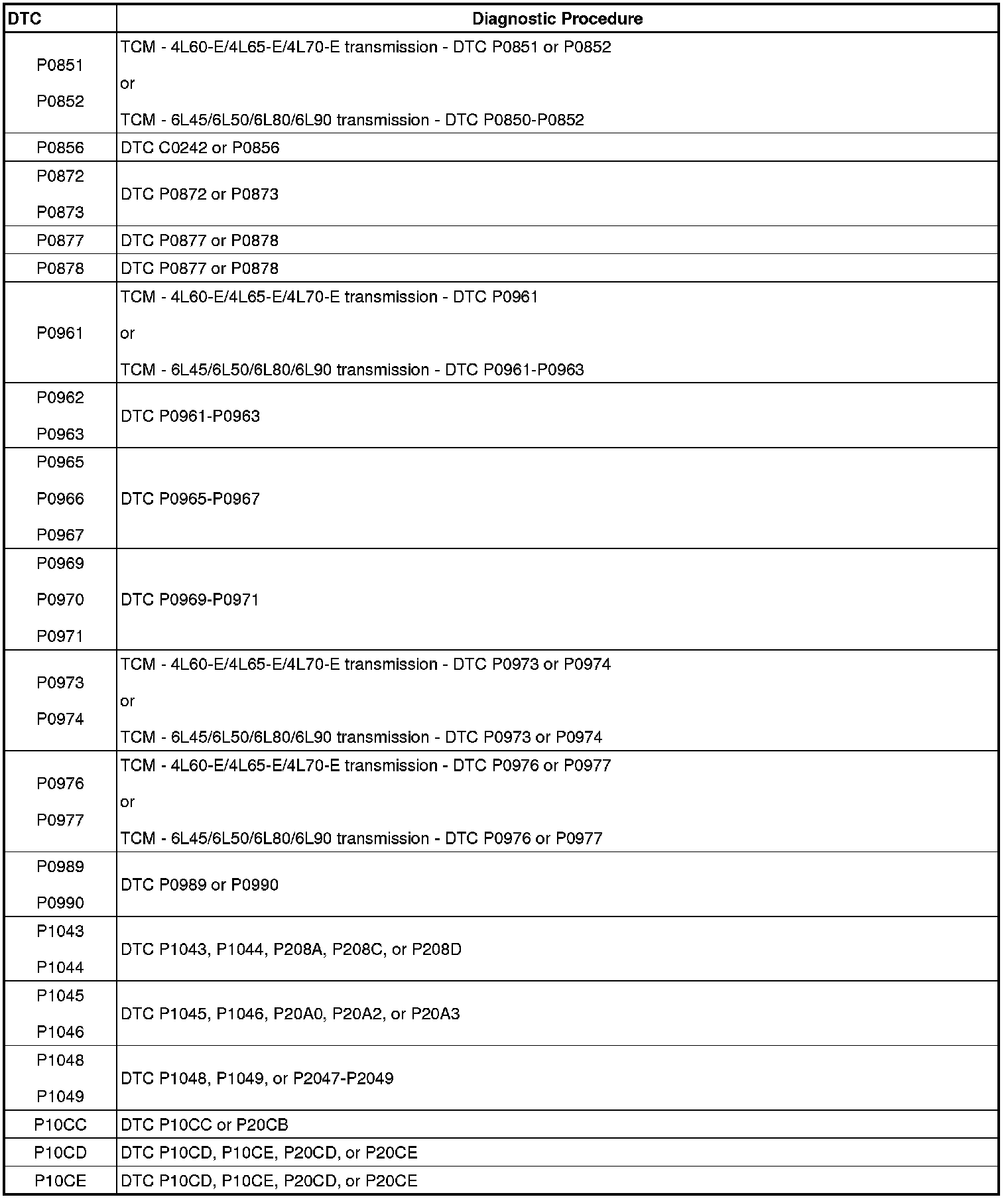 This master DTC list includes all applicable DTCs in alphanumeric order.