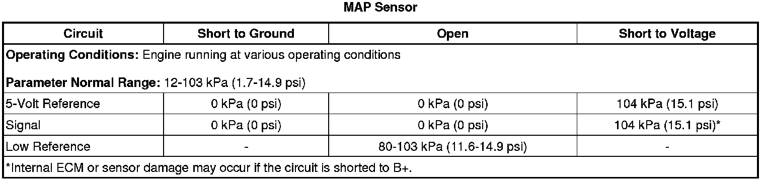 3. Use the observed MAP Sensor Scan Tool parameter that is closest to a value that is indicated in the first column.