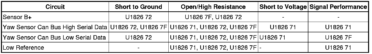 * The EBCM detects a short to ground, open/high resistance on the yaw/rate sensor B+ circuit.