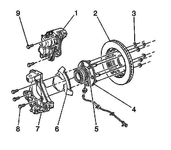 2. Remove the tire and wheel. Refer to Tire and Wheel Removal and Installation Service and Repair.