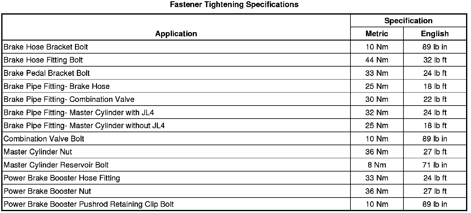 Fastener Tightening Specifications