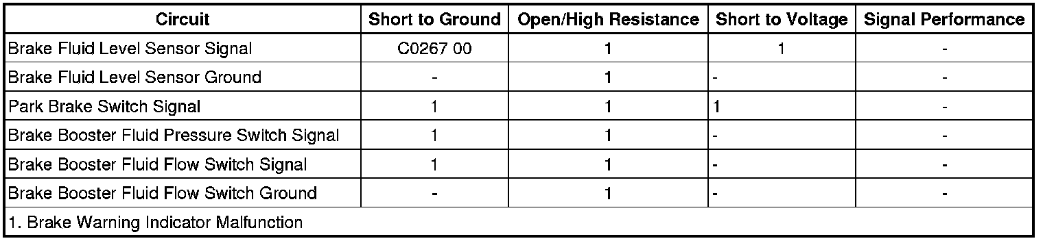5. If all steps above test OK, refer to Brake Booster Fluid Pressure/Flow Alarm Switch Malfunction.