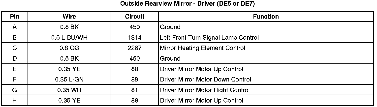 Outside Rearview Mirror - Driver (DE5 or DE7)
