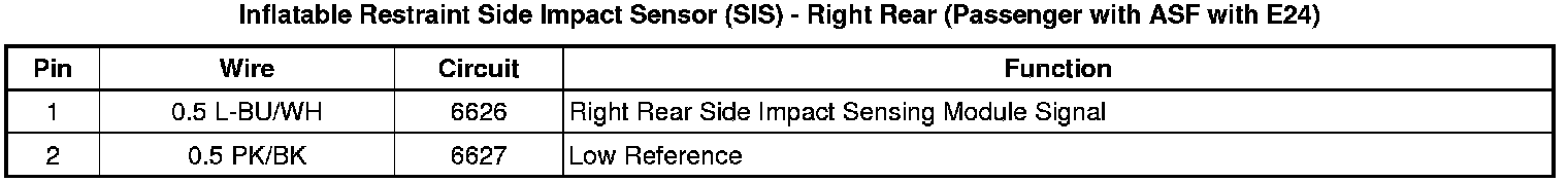 Inflatable Restraint Side Impact Sensor (SIS) - Right Rear (Passenger with ASF with E24)