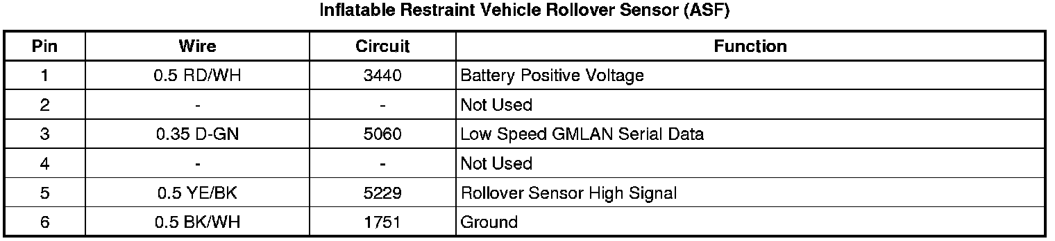 Inflatable Restraint Vehicle Rollover Sensor (ASF)