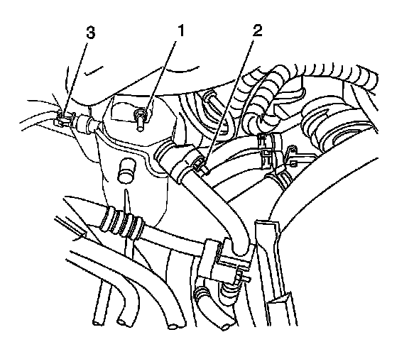 10. Install the coolant reservoir. Refer to Coolant Recovery Reservoir Replacement Coolant Recovery Reservoir Replacement.